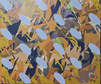 홍영하 작가는 사랑을 주제로, 사랑의 의미를 이미지의 차용과 병치 기법을 통해 해석적으로 표현한다. 작가가 ‘사랑’이라는 감정에 주목하는 이유는 인간관계의 결정체이자 필수적인 감정이며 주체들의 소통과 화합, 이해로 나아가는 길이기 때문이다. 그런데 작품의 색과 구성은 ‘사랑’을 직접적으로 떠올리게 하지는 않는데, 이는 작품의 대상이나 작가의 생각을 “생소하고 모호하게 표현하여 궁금증을 유발하는 것”에 대한 작가관에서 비롯된 표현 방식이다. 서로 어긋나고 분할된 면들, 다채로운 색감은 인간관계에서 오는 소외감, 외로움, 환희, 화합 등 복합적인 감정을 상징하며 감상자와 작품의 교감을 매개해 주는 적극적인 조형 요소이다.