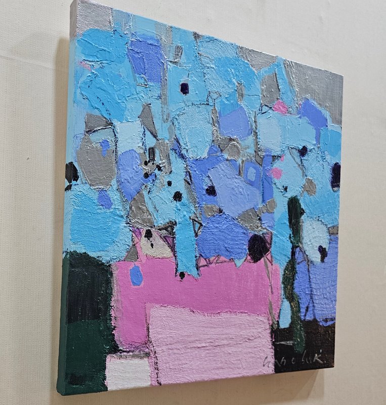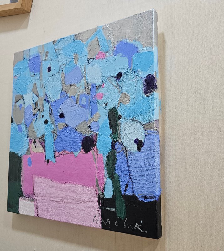 한영숙 작가의 작품은 서로 다른 색과 형태를 지닌 색면과 드리핑 기법을 사용한 점으로 구성되어 있습니다. 작품 속 조형 요소들은 마치 현대 사회를 살아가는 사람들의 모습과 닮아 있습니다. 우리가 사는 세상 속 각각의 생명체는 서로 영향을 주고받으며 살아갈 수밖에 없는 관계적인 존재인 동시에 개인은 고유의 독립된 인격체인 개성을 가집니다. 즉, 이 두 가지를 모두 수용한 한영숙 작가의 작품에서는 색면이 구성해 내는 조화의 아름다움을 느끼고, 그와 함께 우리가 사는 세상을 이루는 요소들의 관계와 ‘자유로운 질서’에 대해 생각해 볼 수 있습니다. 또한, 다름이 주는 조화를 통해 자유로운 상상력을 발휘할 수 있음은 물론 마음에 여유와 따뜻함을 불러일으킵니다.