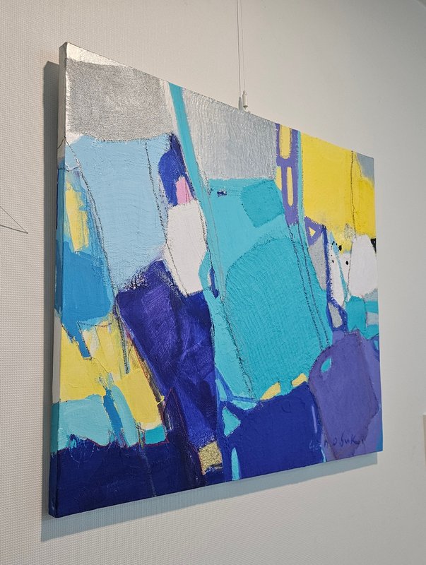 <자유로운 질서>라는 작품 제목처럼 한영숙 작가의 작업에는 다양한 색상과 모양을 지닌 개체가각자의 존재를 나타내며 ‘질서’를 이루고 있다. 캔버스라는 공간 안에서 각기 다른 색, 다른 형태, 다른 질감을 지닌 채 서로 어우러진 색면과 색점들은 동시대를 살아가고 있는 생명체들 간의 관계를 의미한다. 즉, 각기 다른 모습을 하고 있지만, 서로 간에 영향을 주며 색채의 어울림과 아름다움을 창조해낸다. 이러한 측면에서 화면에 자리잡은 색면과 드리핑 한 점들은 우리의 일상생활과 사회를 이루는 구성원을 상징하기도 한다. 때로는 갈등하며 불협화음을 내기도 하지만 때로는 조화를 이루며 각자의 개성을 유지한 집합체가 되기도 하는 우리 삶의 연장선상에서 작품을 바라볼 수 있을 것이다.