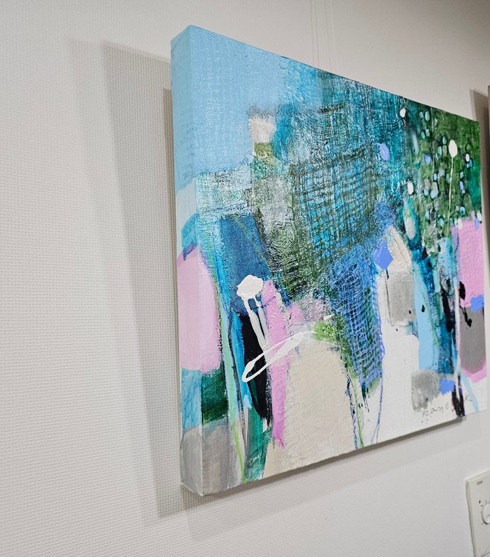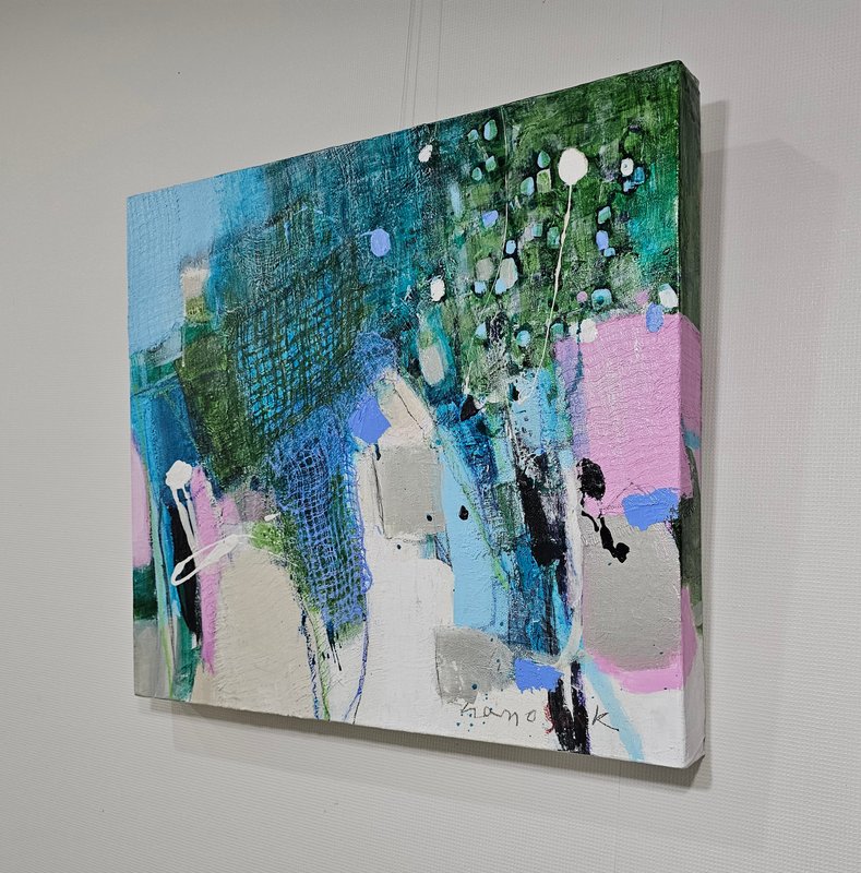 한영숙 작가의 작품은 서로 다른 색과 형태를 지닌 색면과 드리핑 기법을 사용한 점으로 구성되어 있습니다. 작품 속 조형 요소들은 마치 현대 사회를 살아가는 사람들의 모습과 닮아 있습니다. 우리가 사는 세상 속 각각의 생명체는 서로 영향을 주고받으며 살아갈 수밖에 없는 관계적인 존재인 동시에 개인은 고유의 독립된 인격체인 개성을 가집니다. 즉, 이 두 가지를 모두 수용한 한영숙 작가의 작품에서는 색면이 구성해 내는 조화의 아름다움을 느끼고, 그와 함께 우리가 사는 세상을 이루는 요소들의 관계와 ‘자유로운 질서’에 대해 생각해 볼 수 있습니다. 또한, 다름이 주는 조화를 통해 자유로운 상상력을 발휘할 수 있음은 물론 마음에 여유와 따뜻함을 불러일으킵니다.
