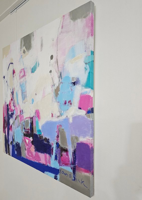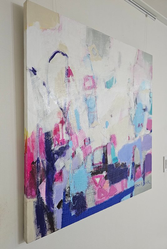 한영숙 작가의 작품은 서로 다른 색과 형태를 지닌 색면과 드리핑 기법을 사용한 점으로 구성되어 있습니다. 작품 속 조형 요소들은 마치 현대 사회를 살아가는 사람들의 모습과 닮아 있습니다. 우리가 사는 세상 속 각각의 생명체는 서로 영향을 주고받으며 살아갈 수밖에 없는 관계적인 존재인 동시에 개인은 고유의 독립된 인격체인 개성을 가집니다. 즉, 이 두 가지를 모두 수용한 한영숙 작가의 작품에서는 색면이 구성해 내는 조화의 아름다움을 느끼고, 그와 함께 우리가 사는 세상을 이루는 요소들의 관계와 ‘자유로운 질서’에 대해 생각해 볼 수 있습니다. 또한, 다름이 주는 조화를 통해 자유로운 상상력을 발휘할 수 있음은 물론 마음에 여유와 따뜻함을 불러일으킵니다.