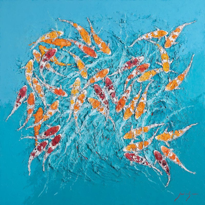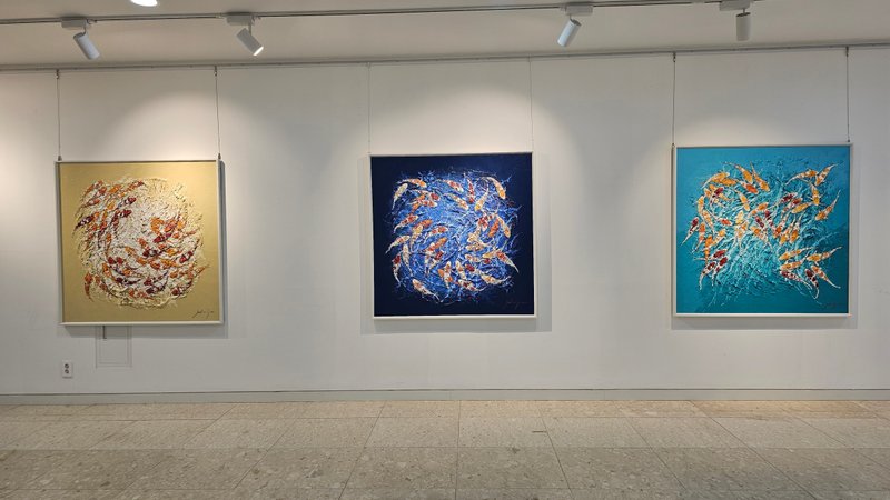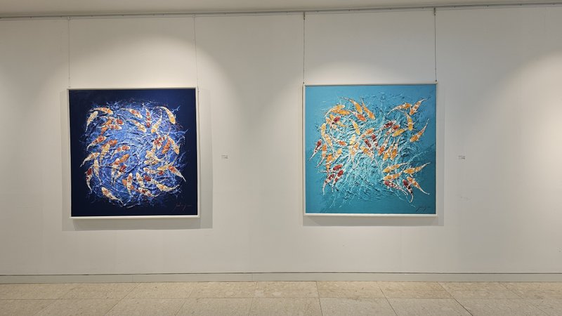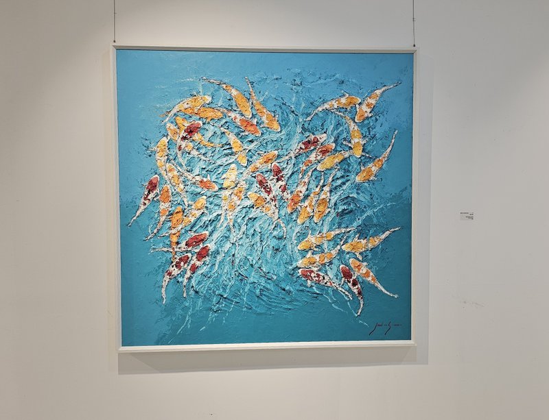 전미선 작가는 명도 높은 색채를 통해 대상에 활력과 생기를 불어넣는 작업을 선보인다. 작품 속에 등장하는 비단잉어(Koi)와 꽃들은 생명의 기쁨과 에너지를 표현하기 위한 작가의 대상으로, 화면의 중심 또는 화면 전체에 가득 그려지며 그 힘을 표출한다. 이러한 작가의 작업은 기법적인 특징이 눈길을 끄는데, 본래 비단잉어는 동양에서 풍요를 상징하는 영물로 이 동양적인 대상을 작가는 유화와 나이프를 이용해 서양의 기법으로 재해석한다. 대상을 붓으로 세밀하게 묘사하기보다는 나이프로 물감을 두껍게 발라내어 형상과 배경을 단순화하고, 대신 화사한 빛과 색채를 화면 전체에 채워내며 순간의 인상을 강조하는 것이다. 또한 나이프의 강약 조절에 의해 칠해진 두터운 마티에르에는 작가의 섬세한 호흡과 움직임이 그대로 담기어 작품에 힘을 더한다.