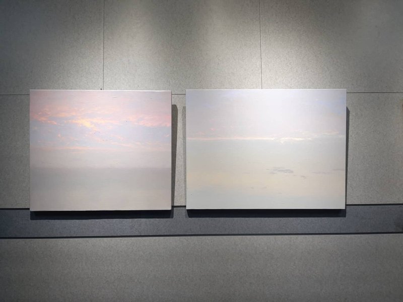 우명하 작가는 대자연을 자신만의 시각적 언어로 표현한다. 작가는 언어보다 시각적으로 사물을 관찰하고 이해한 바를 캔버스로 옮긴다. 먼저 머릿속에 떠오르는 형태, 색 그리고 공간의 질서를 만들어간다. 하늘을 본다는 것은 무언가를 우러러본다는 동경의 의미를 담고 있다. 우명하의 하늘은 대자연의 숭고함을 그렸던 독일 낭만주의 화가 카스파르 다비드 프리드리히(Caspar David Friedrich)의 풍경을 떠오르게 한다. 프리드리히의 드넓은 들판, 절벽, 하늘은 관람자로 하여금 대자연과 마주 선 인간의 쓸쓸함 같은 것이 담겨있다. 하지만 우명하 작가의 하늘은 광활한 공간 그 자체를 우리에게 보여준다. 그 때문에 작품을 보고 있으면 알 수 없는 존재로부터 들려오는 큰 울림에 귀 기울이게 된다. <큰 공간의 소리> 연작은 보이지 않지만, 하늘 너머 큰 공간에 거하는 존재자에 대한 소리를 시각적으로 표현한 것이다. 때문에 그의 작품은 그저 비어 있는, 공허한 공간이 아닌 큰 울림을 담는 공간이 된다.