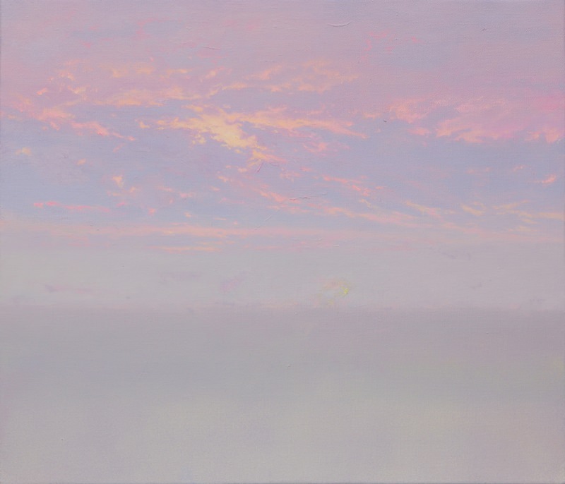 우명하 작가는 대자연을 자신만의 시각적 언어로 표현한다. 작가는 언어보다 시각적으로 사물을 관찰하고 이해한 바를 캔버스로 옮긴다. 먼저 머릿속에 떠오르는 형태, 색 그리고 공간의 질서를 만들어간다. 하늘을 본다는 것은 무언가를 우러러본다는 동경의 의미를 담고 있다. 우명하의 하늘은 대자연의 숭고함을 그렸던 독일 낭만주의 화가 카스파르 다비드 프리드리히(Caspar David Friedrich)의 풍경을 떠오르게 한다. 프리드리히의 드넓은 들판, 절벽, 하늘은 관람자로 하여금 대자연과 마주 선 인간의 쓸쓸함 같은 것이 담겨있다. 하지만 우명하 작가의 하늘은 광활한 공간 그 자체를 우리에게 보여준다. 그 때문에 작품을 보고 있으면 알 수 없는 존재로부터 들려오는 큰 울림에 귀 기울이게 된다. <큰 공간의 소리> 연작은 보이지 않지만, 하늘 너머 큰 공간에 거하는 존재자에 대한 소리를 시각적으로 표현한 것이다. 때문에 그의 작품은 그저 비어 있는, 공허한 공간이 아닌 큰 울림을 담는 공간이 된다.