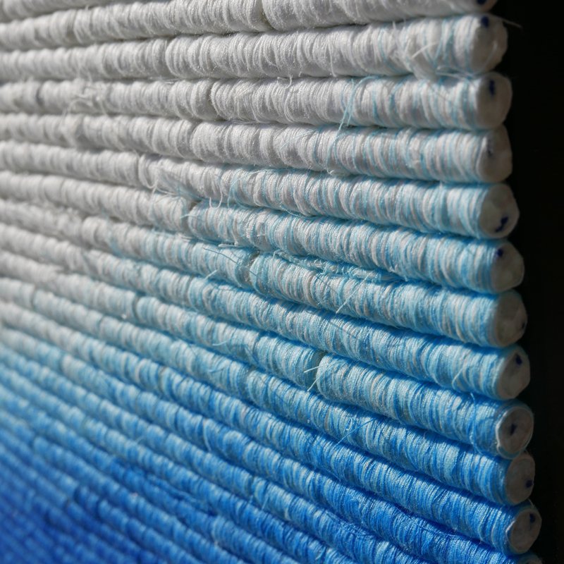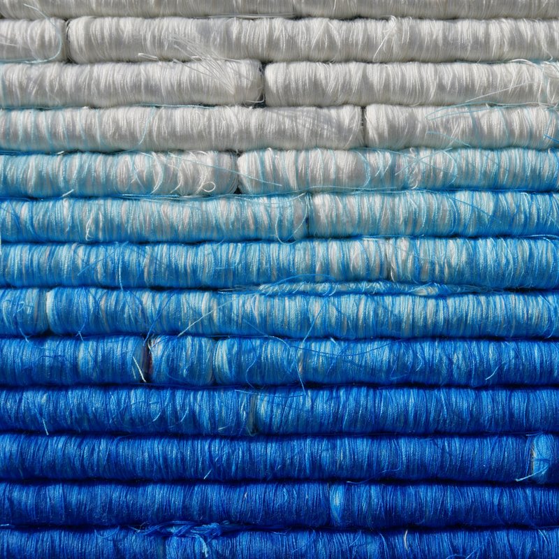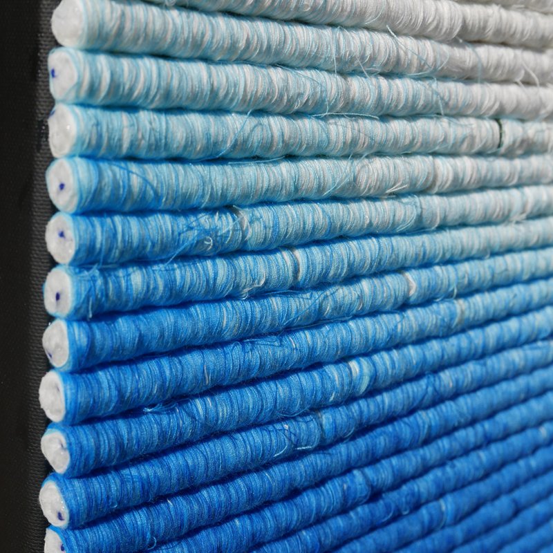 원상준 작가의 전요 시리즈의 제목은 얽힐 전, 두를 요 라는 뜻으로 둘둘 감아 얽힌 모습을 말한다. 작가는 비단과 로프를 이용하여 자르고 감는 과정의 반복으로 회화를 구성하는데, 전체를 이루고 있는 작은 조각들은 불규칙적으로 포개져 견고한 화면을 만든다. 이를 구성하는 각각의 개체는 비단 속에 감긴 로프의 다양한 색감들이 조금씩 비치며 내재성을 가진 군집을 이루고, 부단한 반복으로 이루어진 형상은 선형적이지만 둘둘 감긴 실의 굴곡으로 입체적이면서 다채로운 형상을 만들어낸다. 이로써 전체를 이루는 요소들은 모두 시작과 끝을 구성하고 작가가 가진 세계의 법을 입신하는 근간이 된다.