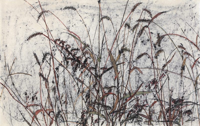 사람들이 이름을 붙여 재배하는 꽃들은 하나의 만들어진 구획 안에서 자라난다. 그 앞으로 정성스럽게 아무개라고 이름이 새겨진 팻말이 서 있을 것이며, 구획 바깥으로 꽃이 마음껏 자라나지 않도록 꽃의 가지를 칠 것이다. 잡초는 각기 다르게 생겼다 하더라도 뭉뚱그려 ‘잡초’라고 불린다. 심은 사람도 없고 가꾸는 이도 없으며 이름조차 없는 잡초를 그림의 대상으로 삼은 윤진숙 작가의 의도는 무엇이었을까? 그의 의도는 비단 잡초가 방향을 가리지 않고 아무렇게나 자라나 ‘의도하지 않은 조형미’를 만들었다는 데에 있는 것만은 아닐 것이다. 주의를 기울여 심거나 돌보지 않았음에도 잡초는 무성하게 자라난다. 꽃을 피우다가 그만 시들어 버리고, 또 아무도 모르는 사이 다시 피어나 있는 잡초에는 무한한 생명력이 있다. 그러나 잡초는 제멋대로 자라나는 것이 아니다. <천천히 스미다>라는 연작의 제목처럼 잡초는 자신이 자라나는 땅과 바람에 자신을 천천히 스며들게 하여 ‘무성한 조화’를 이룬다. 윤진숙 작가는 이러한 ‘무성한 조화’를 동양화의 분위기를 물씬 풍기는 터치와 빛바랜 듯 운치 있는 색감으로 그려내고 있다. 잡초가 주변과 이루어내는 ‘무성한 조화’는 언뜻 훨씬 조화로워 보이는 어떤 인공 정원보다도 아름답고 진실한 삶의 은유가 된다.