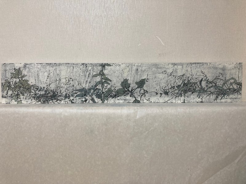 우리는 잡초를 쓸모없는 존재나 아름답지 못한 존재로 쉽게 생각해 버리곤 합니다. 그보다는 장미나 백합, 해바라기처럼 정돈되어 자라나는 이름 있는 꽃들이 더 아름답다고 생각합니다. 그러나 윤진숙 작가의 그림에서 잡초는 무심한 듯 자신의 매력을 뽐내고 있습니다. 캔버스에 빼곡하게 그려진 잡초들은 이쪽저쪽 대중없이 자라난 듯 보이지만 그 어떤 이름난 꽃보다도 힘을 내어 주변 환경에 스며들어 있는 모습이 엿보입니다. 어떤 가지에는 풀이 무성하고, 또 다른 가지에는 듬성듬성 싹이 돋아나 있는데, 이런 각자의 모습 그대로 표현된 잡초는 곱게 가꾸어져 있지 않아도 소박하고 아름다운 우리 삶을 위로하고 어루만져 주는 듯합니다. 거칠지만 생명력 넘치고, 무심하지만 사랑스러운 잡초를 담아낸 <천천히 스미다>를 통해 각자의 삶에 생기가 불어오는 시간을 가질 수 있기를 기대합니다.