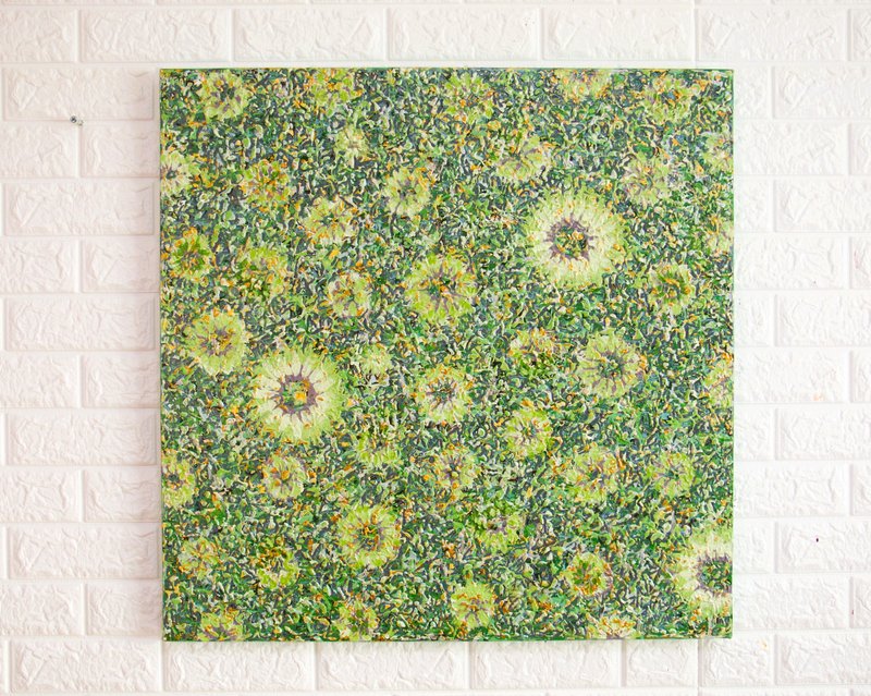 작가는 원, 선, 색면의 조합을 통하여 자연과 생명 그리고 에너지의 흐름을 작품에 담아냅니다. 이를 반복적인 붓질과, 닦아냄, 비움, 그리고 드리핑 기법 등의 다양한 행위들을 이용하여 표현합니다. 작가의 주제와 표현 방식은 자연스럽게 만나 각각의 도상들을 순환시킵니다. 작가의 작품은 무작위적이며, 역동적입니다. 하지만 이러한 무작위성, 역동성 안에도 각각의 존재들은 서로를 무시하거나 거부당하지 않고 교환되며 상호작용을 합니다. 작품은 또 다른 자연을 생성하는 과정에 있습니다. 멈추어있지 않으며, 항상 순환하여 생명을 유지합니다. 작품을 통해 작가의 거대하지만, 개인적인 자연과 생명의 에너지를 함께 느껴보시길 기대합니다.