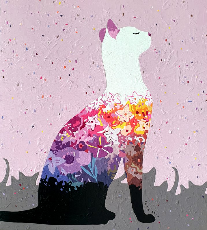 정자빈 작가의 작품에서는 동물이나 꽃, 우산을 쓴 사람 등과 함께 나타나는 패턴이 돋보인다. 언뜻 장식적으로 보이는 작가의 작품들은 사실 사람에 대한 관심과 관찰에서 출발한 것이다. 일과 가정, 사회에서 기대하는 바를 충족시키며 자신의 욕구보다 타인의 감정에 맞추어 살아가게 되는 현대인의 삶에 대한 애정이다. 누구보다 바쁘게, 그러나 정작 자신을 돌아볼 겨를이 없는 현대인이 정자빈 작가의 작품을 보며 잠시나마 위로를 받고 시각적으로 돋보이는 색감과 패턴의 대상을 보며 다시금 적극적인 삶의 의지를 다져볼 수 있을 것이다. 화려하지만 자극적이지 않고 자유롭지만 절제된 미학이 있는 작품이다.