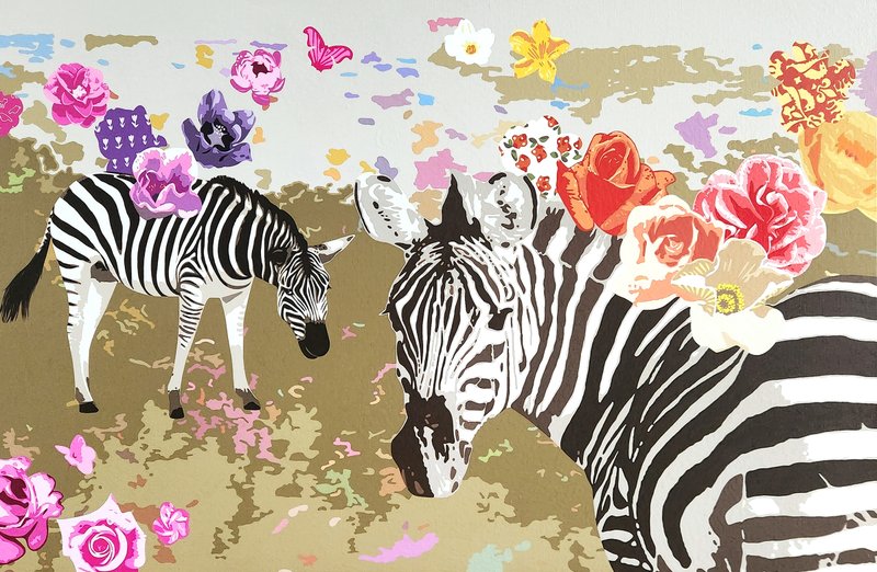 밝은 색감과 자유로운 패턴을 보며 어떤 감정이 느껴지시나요? 반복적인 하루하루 속에서, 역동적이지만 한편으로는 잿빛 도시 속에서 화사한 시각적 자극을 주는 정자빈 작가의 작품은 희망적인 기운을 줍니다. 사람들의 삶이 퍼즐처럼 얽히고설켜 있기도 하고 만개한 꽃이 환한 미소처럼 보이기도 하고 비 오는 날이 저마다의 우산처럼 개성 있는 도시를 만들어 주기도 합니다. 평면 위의 작업이지만 활동적이고 입체적이고 다채로운 느낌이 보는 이로 하여금 일상의 소소한 즐거움을 선사하는 작품입니다.