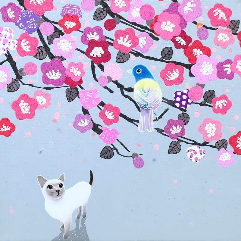 밝은 색감과 자유로운 패턴을 보며 어떤 감정이 느껴지시나요? 반복적인 하루하루 속에서, 역동적이지만 한편으로는 잿빛 도시 속에서 화사한 시각적 자극을 주는 정자빈 작가의 작품은 희망적인 기운을 줍니다. 사람들의 삶이 퍼즐처럼 얽히고설켜 있기도 하고 만개한 꽃이 환한 미소처럼 보이기도 하고 비 오는 날이 저마다의 우산처럼 개성 있는 도시를 만들어 주기도 합니다. 평면 위의 작업이지만 활동적이고 입체적이고 다채로운 느낌이 보는 이로 하여금 일상의 소소한 즐거움을 선사하는 작품입니다.