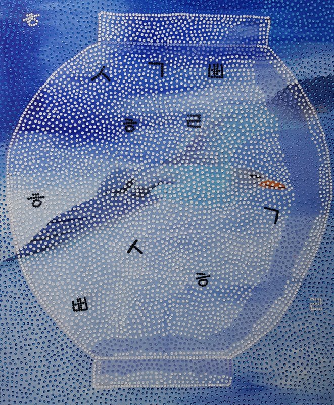 화면 속 무언가 오돌토돌한 질감이 있는 듯 느껴지지 않나요? 유영선 작가의 작품에는 독특한 무늬와 결들이 숨어있답니다. 작업에 따로 장르를 구분 짓지 않고자 하는 작가는 여러 형태를 화면에 담으며 동시에 독특한 무늬를 남깁니다. 다양한 형태 위에 중첩된 점들이 화면 속에 매력적인 조화를 이루고 있습니다. 다채로우면서도 세련된 유영선 작가의 작품 속 실루엣들이 만들어가는 형상들과 아우라를 감상해 보시는 것이 어떨까요?