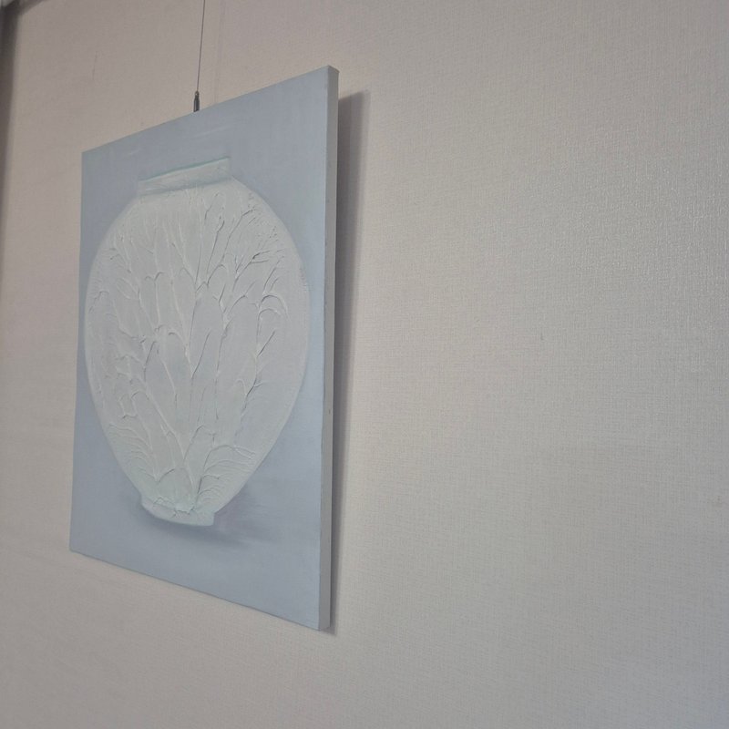 화면 속 무언가 오돌토돌한 질감이 있는 듯 느껴지지 않나요? 유영선 작가의 작품에는 독특한 무늬와 결들이 숨어있답니다. 작업에 따로 장르를 구분 짓지 않고자 하는 작가는 여러 형태를 화면에 담으며 동시에 독특한 무늬를 남깁니다. 다양한 형태 위에 중첩된 점들이 화면 속에 매력적인 조화를 이루고 있습니다. 다채로우면서도 세련된 유영선 작가의 작품 속 실루엣들이 만들어가는 형상들과 아우라를 감상해 보시는 것이 어떨까요?