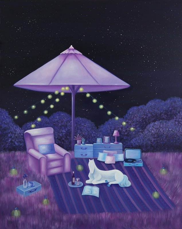 규림 작가의 작품을 감상하는 이들은 그림 속 말의 걸음을 따라 화면 이곳저곳으로 시선을 이동하게 됩니다. 그에 따라 점차 작품 속 공간에 이입하게 되는 관람자들은 시공간의 비합리적 결합, 그림자 없이 부유하는 사물들, 그리고 원근법의 파괴가 특징인 이 초현실적인 공간에서 다양한 상상을 할 수 있습니다. 이와 더불어 부드러운 붓 터치로 인한 모호한 경계와 은은한 색감이 자아내는 몽환적 분위기는 심리적인 안정감을 가져다줍니다. 상상력을 자극하면서 동시에 심리적 위안까지 선사해 주는 이 작품은 각박한 현대사회에 지친 사람들의 탈출구이자 안식처로서 편안한 분위기의 공간과 잘 어울릴 것입니다.