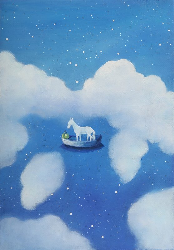 규림 작가의 작품을 감상하는 이들은 그림 속 말의 걸음을 따라 화면 이곳저곳으로 시선을 이동하게 됩니다. 그에 따라 점차 작품 속 공간에 이입하게 되는 관람자들은 시공간의 비합리적 결합, 그림자 없이 부유하는 사물들, 그리고 원근법의 파괴가 특징인 이 초현실적인 공간에서 다양한 상상을 할 수 있습니다. 이와 더불어 부드러운 붓 터치로 인한 모호한 경계와 은은한 색감이 자아내는 몽환적 분위기는 심리적인 안정감을 가져다줍니다. 상상력을 자극하면서 동시에 심리적 위안까지 선사해 주는 이 작품은 각박한 현대사회에 지친 사람들의 탈출구이자 안식처로서 편안한 분위기의 공간과 잘 어울릴 것입니다.