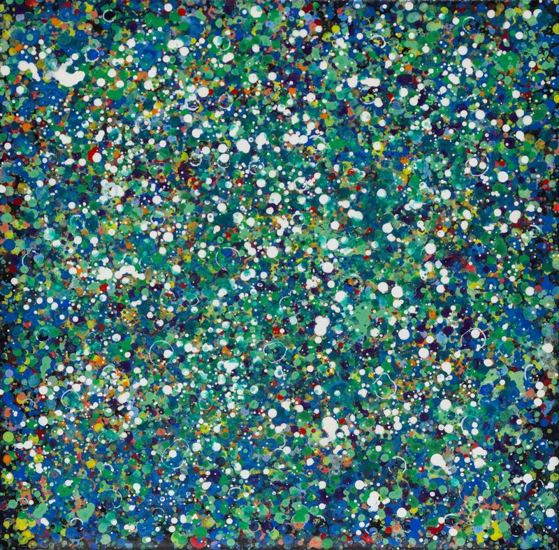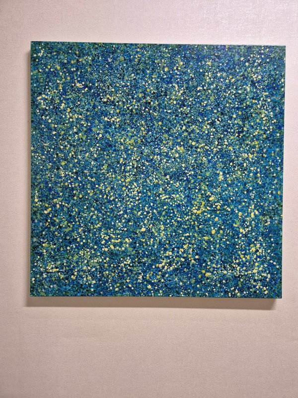 사각형 캔버스 안에 켜켜이 쌓인 색채의 흔적을 눈으로 살펴본다. 먼저 캔버스의 빈 화면을 채우는 작업이 있었을 것이다. 마치 수행자처럼 흰 면 위를 아크릴과 유화 물감으로 채우고 또 채우는 작가의 몸짓을 상상해 본다. 수십 번 반복된 붓질을 통해 완성된 견고한 화면 위의 물감 얼룩은 네모반듯한 캔버스를 깊은 심연의 공간으로 바꾸어 놓는다. 작품을 감상하다 보면 우리는 마치 광활한 우주 속 티끌과도 같은 인간의 존재를 깨닫게 된다. 감상자는 이를 통해 무력감을 느끼는 동시에 경외와 황홀경 등 다양한 미학적 감정을 경험하게 된다. 이처럼 박옥이 작가의 작품 속 다층의 물감이 만들어내는 자연스러운 색감과 정사각형 틀 안의 우주적 공간은 감상자에게 숭고한 미학적 체험을 선사한다.