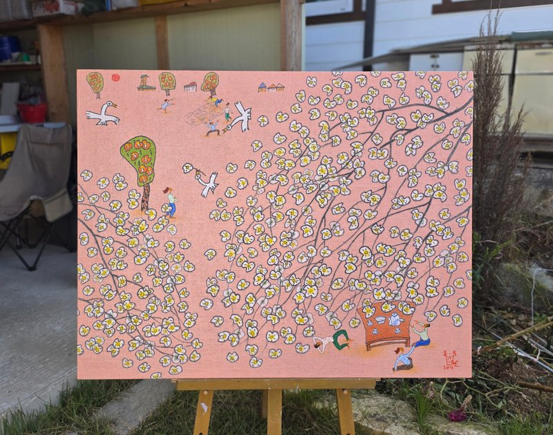 계절과 시간의 변화에 따라 제때 어울리는 옷을 입은 자연의 색이 먼저 마음을 끌어당깁니다. 그리고 그 안에서 맛있는 음식을 나누어 먹고, 달을 바라보며 무언가를 빌거나 떠올리기도 하고, 이웃 친구들과 자연을 놀이터 삼아 노니는 사람들은 향수를 자극합니다. 이 작품을 통해 유년 시절 고향을 떠올리는 이들도 있을 것이며, 누군가는 명절마다 방문하는 조부모님의 집을 떠올릴 수도 있으며, 하다못해 도시에서 나고 자란 이들은 부모님의 유년 시절을 상상할 수도 있을 것입니다. 생동하는 색과 선은 우리의, 우리 부모님들의 소중한 이야기를 생생하게 전달하고 간직하게 해줍니다.