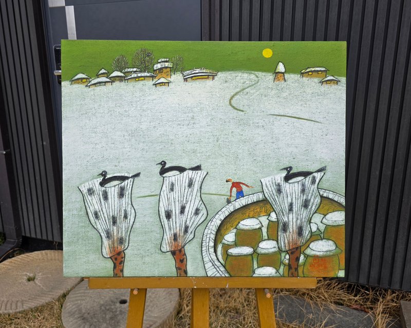 계절과 시간의 변화에 따라 제때 어울리는 옷을 입은 자연의 색이 먼저 마음을 끌어당깁니다. 그리고 그 안에서 맛있는 음식을 나누어 먹고, 달을 바라보며 무언가를 빌거나 떠올리기도 하고, 이웃 친구들과 자연을 놀이터 삼아 노니는 사람들은 향수를 자극합니다. 이 작품을 통해 유년 시절 고향을 떠올리는 이들도 있을 것이며, 누군가는 명절마다 방문하는 조부모님의 집을 떠올릴 수도 있으며, 하다못해 도시에서 나고 자란 이들은 부모님의 유년 시절을 상상할 수도 있을 것입니다. 생동하는 색과 선은 우리의, 우리 부모님들의 소중한 이야기를 생생하게 전달하고 간직하게 해줍니다.