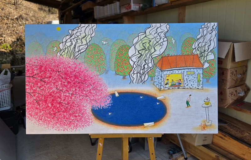계절과 시간의 변화에 따라 제때 어울리는 옷을 입은 자연의 색이 먼저 마음을 끌어당깁니다. 그리고 그 안에서 맛있는 음식을 나누어 먹고, 달을 바라보며 무언가를 빌거나 떠올리기도 하고, 이웃 친구들과 자연을 놀이터 삼아 노니는 사람들은 향수를 자극합니다. 이 작품을 통해 유년 시절 고향을 떠올리는 이들도 있을 것이며, 누군가는 명절마다 방문하는 조부모님의 집을 떠올릴 수도 있으며, 하다못해 도시에서 나고 자란 이들은 부모님의 유년 시절을 상상할 수도 있을 것입니다. 생동하는 색과 선은 우리의, 우리 부모님들의 소중한 이야기를 생생하게 전달하고 간직하게 해줍니다.