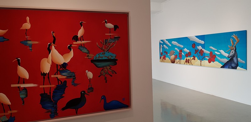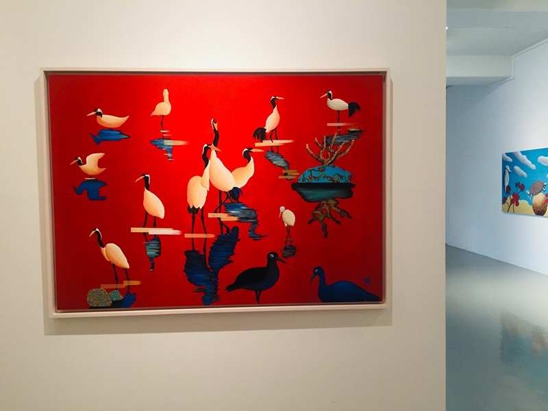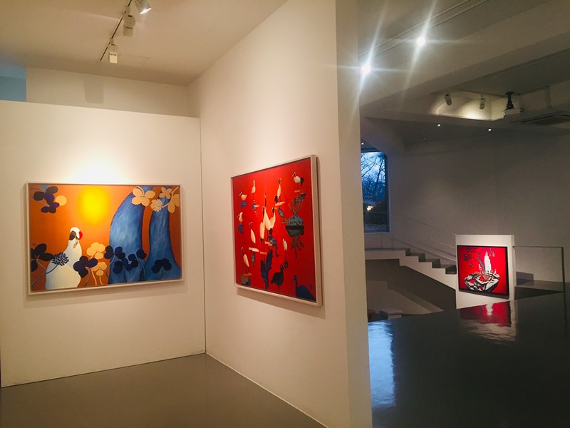 해, 달, 별, 학, 소나무 등의 소재들은 옛날부터 사람들이 무병장수를 기원하면서 다양한 생활용품들 속에 그려 넣었던 것입니다. 작가는 이러한 인간의 바람이 현재에도 이어진다는 점을 관찰하고, 전통적인 소재인 십장생을 현대적인 기법으로 풀어냅니다. 작가의 현대적인 ‘비틀기’는 십장생을 그려 넣는 방식에서도 관찰할 수 있습니다. 전통적인 십장생화에서는 모든 십장생의 온전한 모습을 담아내지만, 작가는 이 중 몇 개를 선택해서 묘사하며, 십장생이 가진 전형적인 색이나 묘사 방법도 다릅니다. 예를 들어서 전통적인 십장생화에서 해는 적색, 달은 황색을 띠지만, 작가의 작업에서 해는 적색 외의 여러 가지 색으로 나타납니다. 작가의 독특함은 작가가 캔버스로 비단을 선택하고 있다는 점에서도 엿볼 수 있습니다. 특히 비단 특유의 촉감을 살려냄으로써 자신만의 캔버스를 만들어낸다는 점에서 독특하죠. 김근정 작가의 작업과 함께 전통의 현대적인 변주가 어떻게 이루어지고 있는지 살펴보는 시간을 가져보셔도 좋을 것 같습니다.