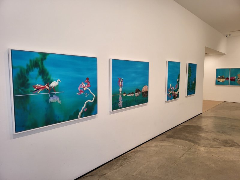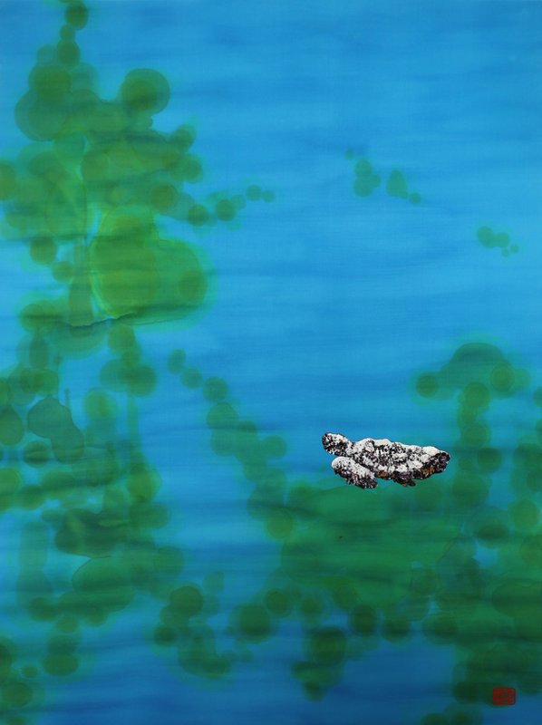해, 달, 별, 학, 소나무 등의 소재들은 옛날부터 사람들이 무병장수를 기원하면서 다양한 생활용품들 속에 그려 넣었던 것입니다. 작가는 이러한 인간의 바람이 현재에도 이어진다는 점을 관찰하고, 전통적인 소재인 십장생을 현대적인 기법으로 풀어냅니다. 작가의 현대적인 ‘비틀기’는 십장생을 그려 넣는 방식에서도 관찰할 수 있습니다. 전통적인 십장생화에서는 모든 십장생의 온전한 모습을 담아내지만, 작가는 이 중 몇 개를 선택해서 묘사하며, 십장생이 가진 전형적인 색이나 묘사 방법도 다릅니다. 예를 들어서 전통적인 십장생화에서 해는 적색, 달은 황색을 띠지만, 작가의 작업에서 해는 적색 외의 여러 가지 색으로 나타납니다. 작가의 독특함은 작가가 캔버스로 비단을 선택하고 있다는 점에서도 엿볼 수 있습니다. 특히 비단 특유의 촉감을 살려냄으로써 자신만의 캔버스를 만들어낸다는 점에서 독특하죠. 김근정 작가의 작업과 함께 전통의 현대적인 변주가 어떻게 이루어지고 있는지 살펴보는 시간을 가져보셔도 좋을 것 같습니다.