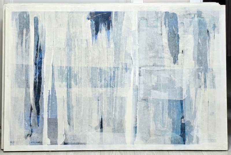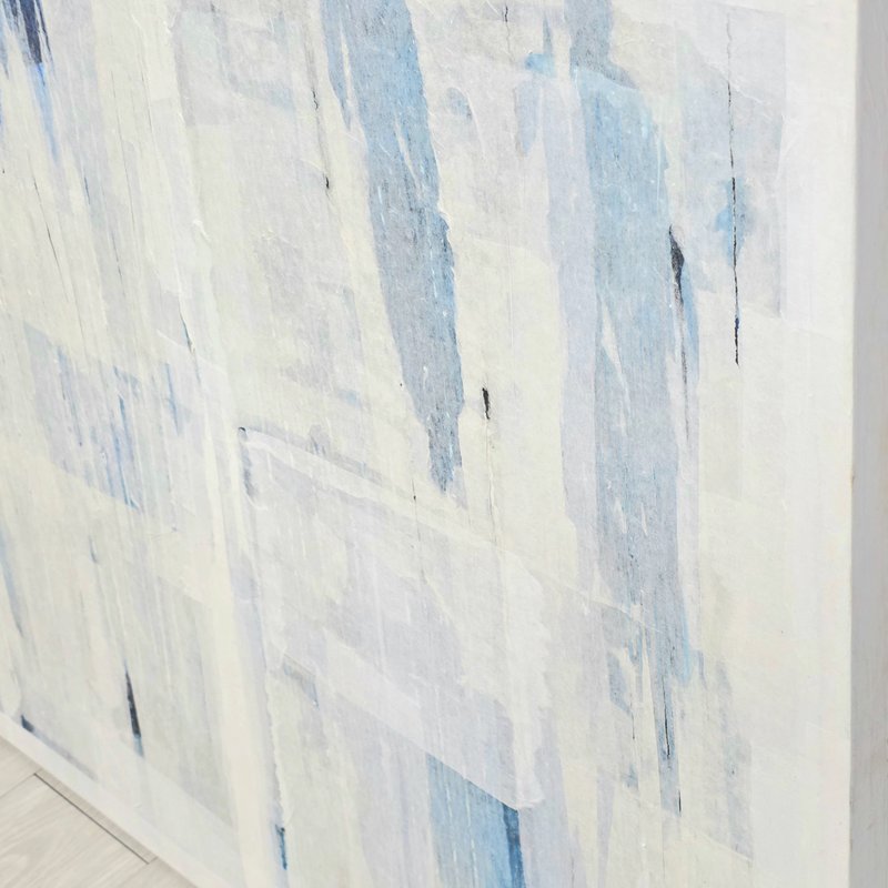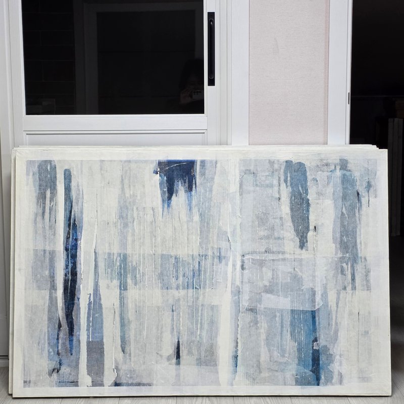 한지에서 느껴지는 은은함이나, 온화함, 자연스러움 등은 다른 매체에서 느낄 수 없는 고유한 시각적, 정서적 체험을 선사합니다. 또한 한국 현대미술에서 한지는 이제 한국적인 미감을 구현하는 것을 넘어 인간의 다양한 감정을 섬세하게 함축하고 드러내는 조형 도구로써 응용되고 있습니다. 김은미 작가의 작업도 한지를 붙이고 찢고 주름으로 표현하기도 하는 중첩의 기법으로 제작됩니다. 한지를 통해 화면 안에서 새로운 이미지를 생성하거나 그것들의 조합을 통해 내적 감성을 투명하게 쏟아내는 것이죠. 이렇게 작품 속 비구상의 서정적인 풍경은 구체적인 심상에 근거를 두지만, 작가는 이를 연상할 수 있는 최소한의 단서만을 남겨 감상자의 상상력을 유도합니다. 비로소 멈추었을 때 얻을 수 있는 사색의 시간을 이 작품과 함께 가져 보는 건 어떨까요?