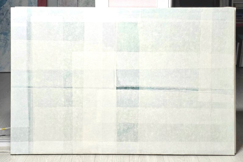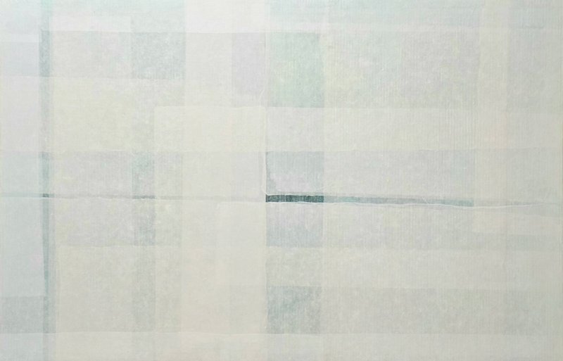 한지에서 느껴지는 은은함이나, 온화함, 자연스러움 등은 다른 매체에서 느낄 수 없는 고유한 시각적, 정서적 체험을 선사합니다. 또한 한국 현대미술에서 한지는 이제 한국적인 미감을 구현하는 것을 넘어 인간의 다양한 감정을 섬세하게 함축하고 드러내는 조형 도구로써 응용되고 있습니다. 김은미 작가의 작업도 한지를 붙이고 찢고 주름으로 표현하기도 하는 중첩의 기법으로 제작됩니다. 한지를 통해 화면 안에서 새로운 이미지를 생성하거나 그것들의 조합을 통해 내적 감성을 투명하게 쏟아내는 것이죠. 이렇게 작품 속 비구상의 서정적인 풍경은 구체적인 심상에 근거를 두지만, 작가는 이를 연상할 수 있는 최소한의 단서만을 남겨 감상자의 상상력을 유도합니다. 비로소 멈추었을 때 얻을 수 있는 사색의 시간을 이 작품과 함께 가져 보는 건 어떨까요?