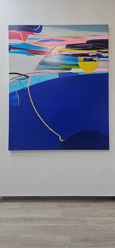 김연옥 작가는 한 개인 내면의 무수한 감정들과 이미지, 그 밖의 복합적인 것들을 하나의 회화적 화면에 구현하고자 한다. 기존에 작가는 주로 ‘달항아리’가 작품 화면에 명료하게 가득 차 있는 작품들을 지속적으로 작업하곤 했다. 작가에게 달항아리란 도자기 관련 일을 하던 아버지, 그리고 이와 얽혀있는 어린 시절 추억의 매개체로서 작용했다. 다만 해당 작품에서 작가는 달항아리의 명료한 형태를 표현하기보다, 물감의 다채로운 표정과 함께 저마다의 질료성이 느껴지는 터치와 선들로 화면을 메우고 있다. 작품 속 이 흔적들은 작가의 기억과 감정들을 단서 삼아 파생된 흔적, 얼룩, 기호, 무늬이다. 이들이 모여 한 화면 속에 정서와 여운을 동반하며 다채로운 것을 연상시키는 시각적 이미지로 나타나 있는 것이다.