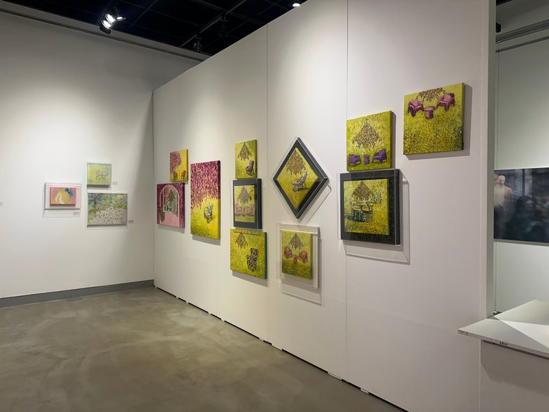 누구나 살아가면서 ‘왜 이 수많은 선택지 중 내가 원하는 것은 없지? 내가 이상한가?’라는 생각을 해본 적이 있을 것입니다. 진학, 취직 등 인생의 중요한 선택의 기로가 아니더라도 무언가를 살 때, 심지어 밥 먹을 곳을 정할 때도 선택지는 무척 많지만, 내가 원하는 것은 특별히 없어 그다지 원치 않는 선택을 해야 했던 경험 말입니다. 이 작품의 제목을 통해 작가는 관람객에게 특정 색이 어디 있는지 묻고 있지만, 정작 질문의 대상이 되는 색은 작품에서 거의 찾아볼 수 없습니다. 오히려 제목에 없는 전혀 다른 색만이 가득하기에 결국 질문 속의 색을 찾지 못하기도 합니다. 하지만 그것이 그 색이 존재하지 않는다는 뜻은 아니기에, 이런 작가의 물음을 통해 관람객은 자신의 고민에 대한 공감과 위로를 받을 수 있습니다.