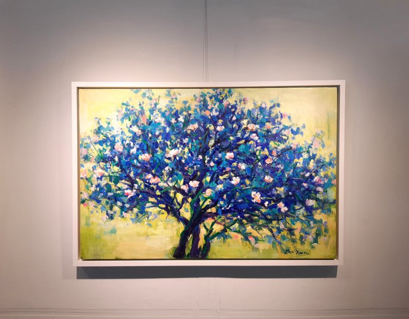 많은 사람들은 대자연의 품 안에서 쉼을 누리고, 활력을 발하는 작은 생명체의 움직임에도 일종의 경외를 느끼기도 합니다. 심보윤 작가의 작품 또한 화려한 기교가 아닌, 있는 그대로의 연출과 표현으로부터 전해지는 진솔함으로 잔잔한 감동을 줍니다. 포슬포슬하게 내려앉은 붓 자국의 마티에르와 오묘하고 부드러운 색감은 감상자의 숨 가쁜 일상에 치유의 미학을 구현합니다. 화면을 가득 메운 이파리, 꽃, 열매가 작가의 눈에 비친 궁극의 생명력으로 움튼 것일까요. 사방으로 퍼지는 색채에는 영원의 자연으로 향하는 밝은 힘이 가득하며, 삶의 긍정마저 불러오는 듯합니다. 안온하면서도 짙은 서정성이 느껴지는 이 작품과 함께 더 충만한 삶의 관조, 그리고 세상과 느긋한 교감을 시도해 보시는 것은 어떨까요?