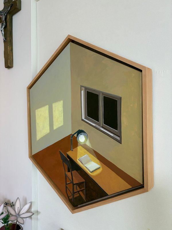 온통 시각적인 자극에 과도하게 노출될 수밖에 없는 현대인의 낮과 달리, 밤에는 어두움 아래 모두 공평하게 휴식하며 단순히 보이는 것 이면의 것을 사유하게 만들기도 한다. 결국 작가는 시각 예술로 자신의 생각과 감정을 담으면서도 때로는 진정 중요한 것은 눈에 보이지 않기도 한다는 사실을 ‘밤’이라는 소재를 통해 이야기한다. 또한 낮 동안 맺는 수많은 관계와 그 관계 사이에서 벌어지는 언어적, 비언어적 소통들 모두를 다시금 되새기는 공간을 그린다. 그 공간은 휴식의 의미를 갖기도 하고 수많은 생각과 갈등이 담긴 인간의 내면을 은유한다. 스스로에게 던지는 성찰과 질문이 달빛이 되어 방 안에 내리쬔다.