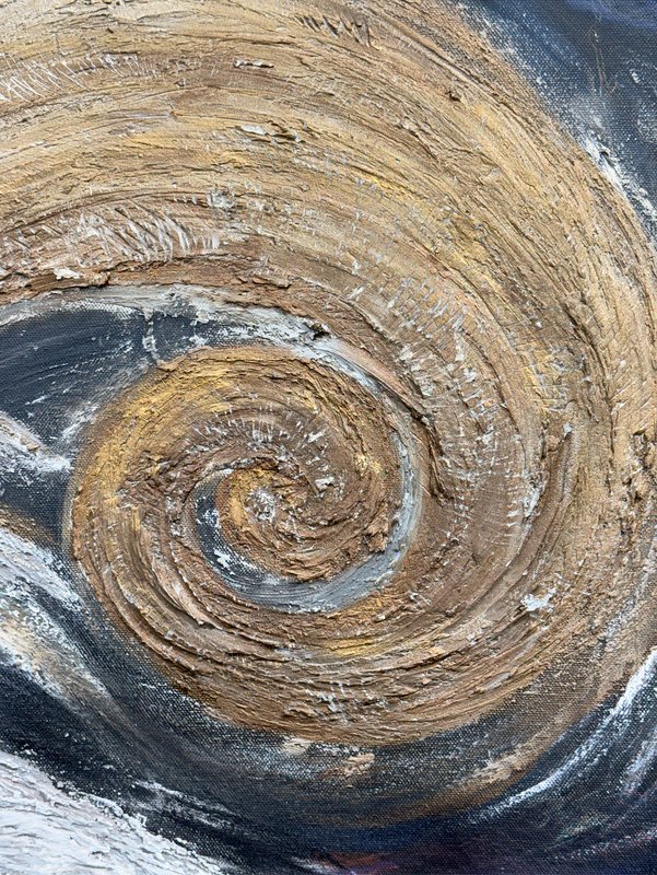 우주에서 지구를 바라본다면 이런 모습일까? 홍성윤 작가의 작품은 우주를 담고 있다. 물 위로 흘려보낸 물감으로 그려진 추상화는 우주로 향하며 세상의 모든 존재가 가진 비밀을 파고든다. 하늘에서 빛나는 우주로 보이던 다이내믹한 물감의 움직임은 생동하는 지구의 대기로, 드넓게 펼쳐진 협곡으로 변주된다. 그런가 하면 지구의 근원을 이루는 암석의 단면을 클로즈업하기도 한다. 이렇듯 홍성윤 작가의 작품은 범 우주론적인 시각을 보여준다. 거시적인 세계와 미시적인 세계는 분리되지 않고 작품 안에서 공존하며, 감상자의 시각을 순식간에 이 차원에서 저 차원으로 이동시킨다. 모든 평범하고 작은 요소들은 광활한 우주를 이루는 독립적인 개체이자 저마다의 우주 그 자체가 되는 것이다. 홍성윤 작가는 예술이라는 아름다운 수단을 통해 각각의 존재가 가진 힘과 가능성을 무한한 우주로 확장하고 있다.