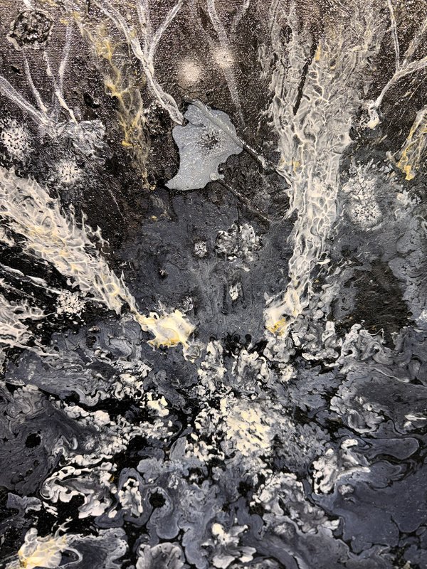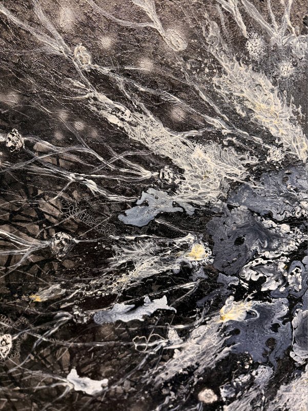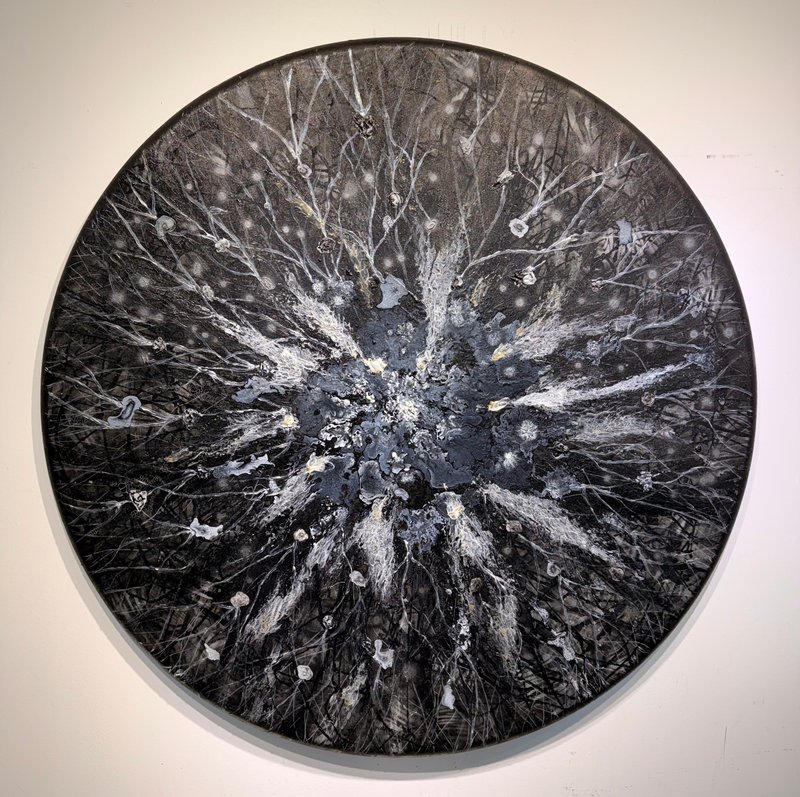 홍성윤 작가의 작품을 보면 첫눈에 우주가 보입니다. 한 발 더 다가서면 바위를 자른 단면 같아 보이기도 합니다. 그러고 더 가까이 다가가 자세히 들여다보면 물에 흘려보내진 가루와 물감의 생생한 질감까지 볼 수 있습니다. 물감의 작은 알갱이에서부터 드넓은 우주까지 이어지는 홍성윤 작가의 작품세계는 Yoon1verse라는 예명에서도 드러납니다. ‘Universe’를 뼈대로 작가의 이름의 한 부분인 윤과 기초적이고 유일한 존재를 뜻하는 1을 더한 이름입니다. 이는 세상의 가장 작은 단위인 개체의 독립성과 그 모두를 포괄하는 우주 사이에서 예술로 소통을 가능케 하겠다는 홍성윤 작가의 예술관을 보여줍니다. 세계 유수의 대학에서 수학하고 다양한 나라에서 아트 레지던시 생활을 거친 작가의 경험은 이렇게 존재와 우주를 관통하는 초월적인 작품들을 탄생시켰습니다. 우주를 품은 홍성윤 작가의 작품 속에서 존재의 비밀을 찾아 유영해 보는 것은 어떨까요?