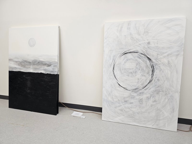 신영진(mul) 작가는 틀에 맞춰진 장르와 재료에서 벗어난 다양한 작업을 시도한다. 주로 흔들리는 것, 느린 것, 움직이는 것, 둥근 것, 유연한 것, 완벽하지 않은 것, 남겨진 것, 장난스러운 것들에 마음이 이끌린다는 작가에게 그 어떠한 것도 모두 그림의 도구가 된다. 아이를 키우는 작가가 쉽게 접하는 유아용 크레파스, 어린이용 도화지, 안 쓰는 화장품 등이 화면 표현의 일부가 되고, 직사각형 캔버스를 비정형의 나무 패널이 대신하며 작가의 이야기가 펼쳐진다. 일상과 내면의 서사를 자유롭고 진솔하게 담아낸 화면에는 선과 면이 연대하여 선명한 색채가 조화를 이루고 타인을 위로하고 공감하는 긍정적인 에너지를 전한다.