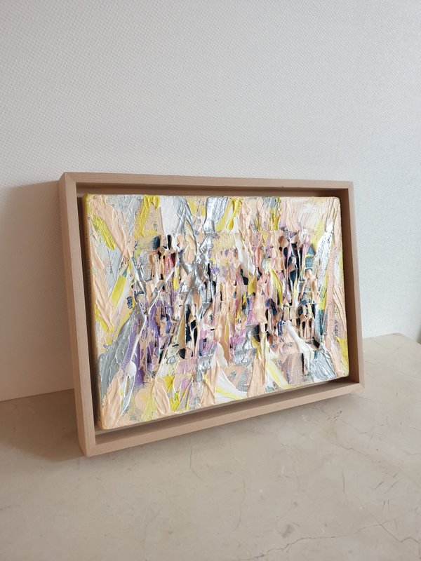 매일 반복되는 비슷한 일상일지라도 조금 더 예민한 감각으로 들여다보면 매번 다른 소중한 순간들과 감정들이 매 작품 속에서 다양한 색채로 표현되었습니다. 그렇기 때문에 송정현 작가의 작품들은 단일한 색조로 규정지을 수 없습니다. 내면의 색채들은 작가가 오리고 매듭짓고 붙여 만든 입체적인 표면과 그 사이사이의 틈이 만들어내는 호흡으로 세상과 소통합니다. 자유분방한 색채 표현에 독자적인 질감 표현이 더해져 한 층 더 친밀하고 생동감 있게 다가옵니다. 천이 짜일 때에 발생하는 가로줄과 세로줄의 매듭은 한 개인의 내면과 외부의 세계가 관계를 맺고 소통하는 과정을 닮아있습니다. 한 사람의 다양한 면모만큼이나 다양한 색채가 주는 위로를 느껴보세요.