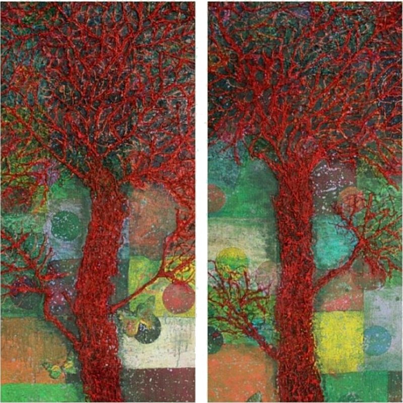리정 작가가 펼쳐낸 미지의 대륙에서는 화려한 색채의 자연 풍경, 그리고 강렬함을 더하는 질감이 끝없이 조우한다. 폴 고갱이 타히티의 원초적 아름다움을 사랑했듯이, 작가 또한 원색을 아끼지 않는 색채 선택을 통해 서정적인 동시에 초월적인 상징성을 구현하였다. 한편, 상징주의적 작업 방식을 근간으로 하여 풍요로운 자연을 풀어낸 리정의 테크닉에는 리듬과 멜로디가 녹아 있다. 마치 꽃이 매년 피고 지듯, 생의 단계가 지닌 반복적 특성은 ‘시간’이라는 얼굴로 재현된다. 연작의 제목 <시간의 연속성> 또한 다양한 형상으로 등장하는 생명에 삶과 죽음의 순환고리가 불가피하게 스며들어 있음을 드러낸다.