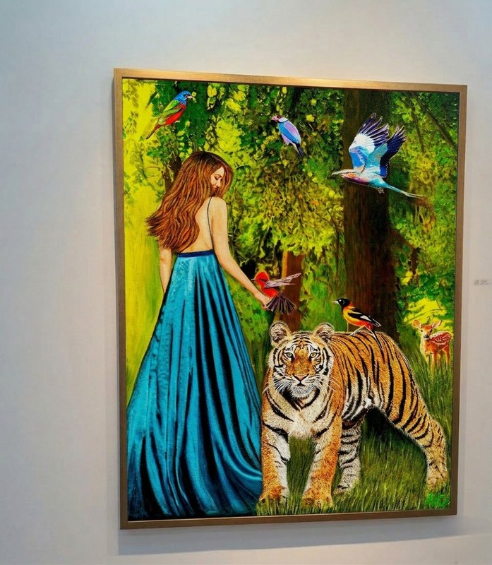리정 작가가 펼쳐낸 미지의 대륙에서는 화려한 색채의 자연 풍경, 그리고 강렬함을 더하는 질감이 끝없이 조우한다. 폴 고갱이 타히티의 원초적 아름다움을 사랑했듯이, 작가 또한 원색을 아끼지 않는 색채 선택을 통해 서정적인 동시에 초월적인 상징성을 구현하였다. 한편, 상징주의적 작업 방식을 근간으로 하여 풍요로운 자연을 풀어낸 리정의 테크닉에는 리듬과 멜로디가 녹아 있다. 마치 꽃이 매년 피고 지듯, 생의 단계가 지닌 반복적 특성은 ‘시간’이라는 얼굴로 재현된다. 연작의 제목 <시간의 연속성> 또한 다양한 형상으로 등장하는 생명에 삶과 죽음의 순환고리가 불가피하게 스며들어 있음을 드러낸다.