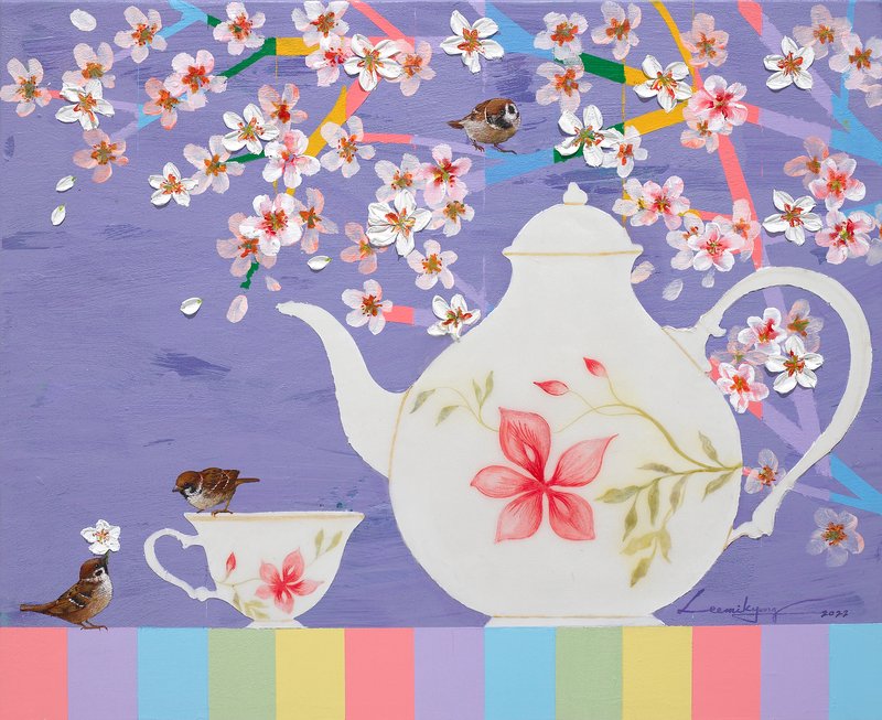 도시 속에 살아가고 있는 현대인의 삶은 삭막한 회색빛이라고 이야기합니다. 많은 문학가들은 도시 속 소외된 인간들의 삶에 대해 이야기하고, 화가들은 자신들의 표현방식으로 현대의 문제점들을 지적하곤 합니다. 하지만 과연 우리의 삶이 삭막하고 괴롭기만 할까요? 이미경 작가의 생각은 좀 다릅니다. 작가는 다양한 색으로 도시의 풍경을 묘사하고 작고 귀여운 참새들로 현대인을 나타냈습니다. 참새는 동양에서 기쁨을 가져다주는 새로 알려져 있습니다. 작가는 이런 참새의 모습을 통해 도시에서 살아가는 사람들의 소박하면서도 행복한 삶의 이야기를 그리고자 했습니다. 그 결과 회색빛 콘크리트 도시는 한국적인 정서가 묻어있는 알록달록한 색동의 도시로 바뀌었습니다. 그동안 무겁고 답답한 도시의 풍경화에 지쳐있다면, 이미경 작가의 작품으로 분위기를 환기시켜보면 어떨까요? 작품을 바라보며 미소를 머금게 하는 여유와 행복을 얻어가실 수 있을 것입니다.