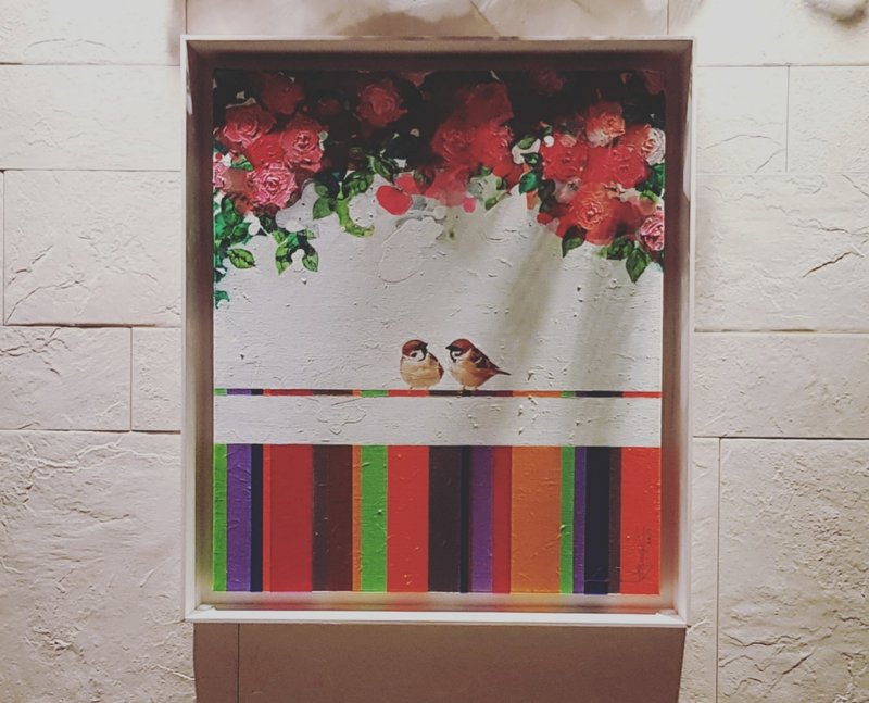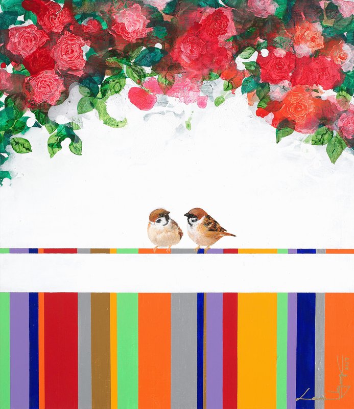 도시 속에 살아가고 있는 현대인의 삶은 삭막한 회색빛이라고 이야기합니다. 많은 문학가들은 도시 속 소외된 인간들의 삶에 대해 이야기하고, 화가들은 자신들의 표현방식으로 현대의 문제점들을 지적하곤 합니다. 하지만 과연 우리의 삶이 삭막하고 괴롭기만 할까요? 이미경 작가의 생각은 좀 다릅니다. 작가는 다양한 색으로 도시의 풍경을 묘사하고 작고 귀여운 참새들로 현대인을 나타냈습니다. 참새는 동양에서 기쁨을 가져다주는 새로 알려져 있습니다. 작가는 이런 참새의 모습을 통해 도시에서 살아가는 사람들의 소박하면서도 행복한 삶의 이야기를 그리고자 했습니다. 그 결과 회색빛 콘크리트 도시는 한국적인 정서가 묻어있는 알록달록한 색동의 도시로 바뀌었습니다. 그동안 무겁고 답답한 도시의 풍경화에 지쳐있다면, 이미경 작가의 작품으로 분위기를 환기시켜보면 어떨까요? 작품을 바라보며 미소를 머금게 하는 여유와 행복을 얻어가실 수 있을 것입니다.