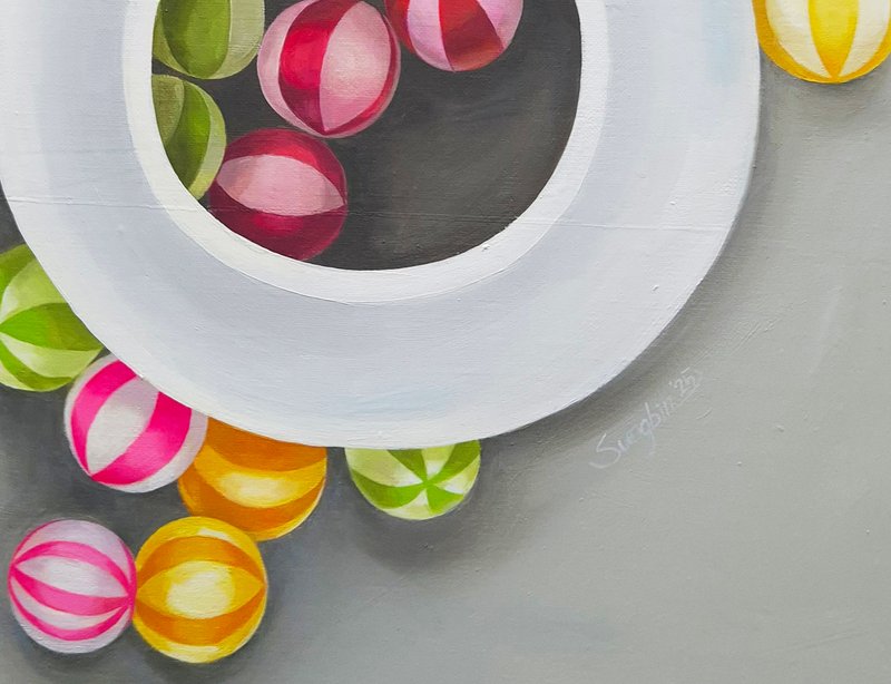 문성빈 작가의 작품 속 꽃과 사탕이 어떻게 보이시나요? 첫눈에도 소담스럽게 담긴 색색의 사탕과 화사한 꽃이 잘 보입니다. 하지만 가까이에서 자세히 보면 사진처럼 명확하게 그려진 것은 아닙니다. 꽃 작품들은 물감을 두껍게 덧칠하는 임파스토 기법으로 그려져 거친 질감이 느껴집니다. 그럼에도 문성빈 작가의 작품들이 선명한 인상을 갖는 것은 어떤 이유일까요? 19세기 후반 인상주의 화가들은 눈에 보이는 그대로를 화폭에 옮기기 위해 다양한 시도를 했습니다. 원근법과 같은 과학적인 방법으로 대상을 분석한 이전 화가들과는 달리 대상을 바라보는 순간에 주목한 것이지요. 그렇기 때문에 빛의 세기나 방향에 따라 다소 왜곡되거나 흐려진 순간이 작품에 생생히 남게 되었습니다. 오늘날 인상주의 작품들이 많은 사랑을 받는 이유는 순간의 인상에 담긴 강한 감정에 있습니다. 문성빈 작가의 꽃과 사탕 역시 자세한 묘사보다 더욱 강렬하게 전달되는 감정이 담겨있습니다. 바로 위안의 감정이지요. 문성빈 작가의 작품을 통해 힐링의 시간을 가져보세요.