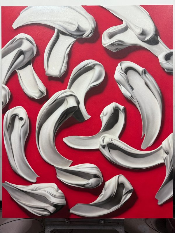 천으로 포장되어있거나 가려진 물건을 보면 '누군가 나를 위해 선물을 준비한 걸까?'하는 기대감과 함께 '무엇을 숨겨놓은 걸까?'하는 불안감을 함께 느끼곤 합니다. 인간은 무려 다섯 가지의 감각을 가지고 있지만, 대부분이 주로 사용하고 있는 감각은 '시각'일 것입니다. 때문에 천이나 껍데기같이 시각을 차단하는 무언가를 접하게 되면, 그 안에 있는 '본질'을 완전히 알기가 힘듭니다. 이정용 작가는 바로 이 점에 착안하여 '천'을 소재로 한 다양한 작품들을 그리고 있습니다. 화면에는 풀어헤쳐지거나 무언가를 싸고 있는 다양한 형태와 색감의 천이 등장합니다. 하지만 작가가 말하고자 하는 것은 '천' 그 자체가 아닌, 그 안에 가려져 있는 '본질'입니다. 이정용 작가의 작품을 감상하며, 가려진 베일 안의 본질을 생각해보는 시간을 가져보는 건 어떨까요?