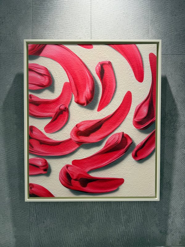 천으로 포장되어있거나 가려진 물건을 보면 '누군가 나를 위해 선물을 준비한 걸까?'하는 기대감과 함께 '무엇을 숨겨놓은 걸까?'하는 불안감을 함께 느끼곤 합니다. 인간은 무려 다섯 가지의 감각을 가지고 있지만, 대부분이 주로 사용하고 있는 감각은 '시각'일 것입니다. 때문에 천이나 껍데기같이 시각을 차단하는 무언가를 접하게 되면, 그 안에 있는 '본질'을 완전히 알기가 힘듭니다. 이정용 작가는 바로 이 점에 착안하여 '천'을 소재로 한 다양한 작품들을 그리고 있습니다. 화면에는 풀어헤쳐지거나 무언가를 싸고 있는 다양한 형태와 색감의 천이 등장합니다. 하지만 작가가 말하고자 하는 것은 '천' 그 자체가 아닌, 그 안에 가려져 있는 '본질'입니다. 이정용 작가의 작품을 감상하며, 가려진 베일 안의 본질을 생각해보는 시간을 가져보는 건 어떨까요?