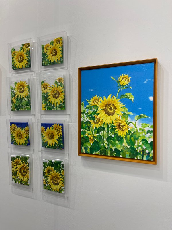 강라희 작가의 작품들은 오아시스라는 제목을 가지고 있습니다. 오아시스는 사막과 같이 척박한 환경에서 솟아나는 샘으로 생태계의 순환을 가능하게 하는 지역입니다. 강라희 작가는 그 오아시스를 커다란 부리를 가진 투칸새와 활짝 핀 꽃이 사는 곳으로 묘사합니다. 꽃과 투칸새는 캔버스의 중앙에 위치하고 주변은 빨간색, 파란색과 같은 강렬한 색으로 마무리되어 있습니다. 배경의 강렬한 색은 중앙의 소재들을 돋보이게 하면서 동시에 주변에서 고립된 지역인 오아시스를 연상케 합니다. 강라희 작가는 색과 구도 그리고 독특한 소재의 선택을 통해 자신만의 오아시스를 시각적으로 표현하고 있습니다. 실제의 오아시스보다 훨씬 강렬하고 화려하게 그려진 작품은 현실 세계에서 꿈꾸는 이상 세계의 환영이라 할 수 있습니다. 강라희 작가의 작품을 통해 집 안에 나만의 오아시스를 만들어 보는 것은 어떨까요?