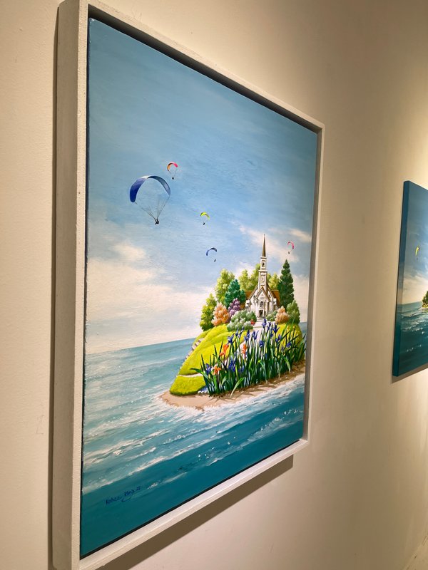 강라희 작가의 작품들은 오아시스라는 제목을 가지고 있습니다. 오아시스는 사막과 같이 척박한 환경에서 솟아나는 샘으로 생태계의 순환을 가능하게 하는 지역입니다. 강라희 작가는 그 오아시스를 커다란 부리를 가진 투칸새와 활짝 핀 꽃이 사는 곳으로 묘사합니다. 꽃과 투칸새는 캔버스의 중앙에 위치하고 주변은 빨간색, 파란색과 같은 강렬한 색으로 마무리되어 있습니다. 배경의 강렬한 색은 중앙의 소재들을 돋보이게 하면서 동시에 주변에서 고립된 지역인 오아시스를 연상케 합니다. 강라희 작가는 색과 구도 그리고 독특한 소재의 선택을 통해 자신만의 오아시스를 시각적으로 표현하고 있습니다. 실제의 오아시스보다 훨씬 강렬하고 화려하게 그려진 작품은 현실 세계에서 꿈꾸는 이상 세계의 환영이라 할 수 있습니다. 강라희 작가의 작품을 통해 집 안에 나만의 오아시스를 만들어 보는 것은 어떨까요?