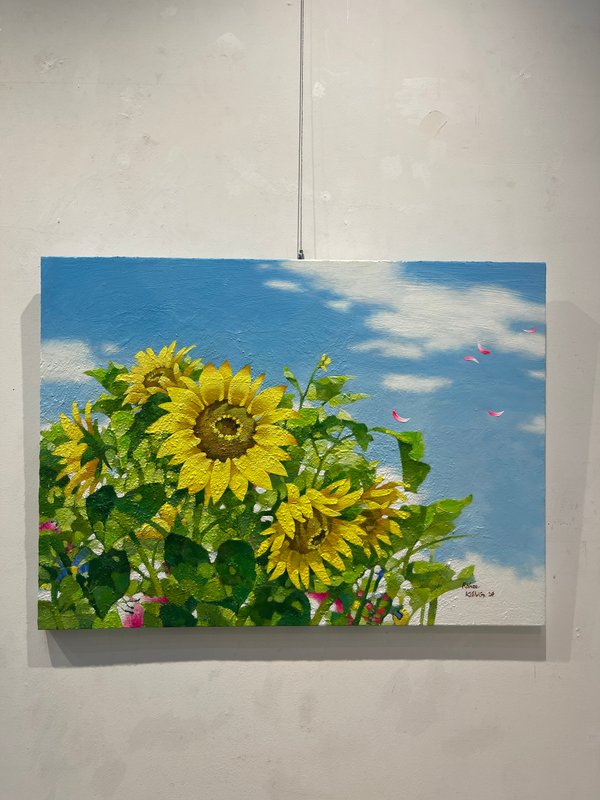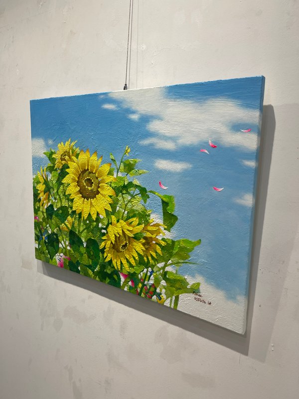 강라희 작가의 작품들은 오아시스라는 제목을 가지고 있습니다. 오아시스는 사막과 같이 척박한 환경에서 솟아나는 샘으로 생태계의 순환을 가능하게 하는 지역입니다. 강라희 작가는 그 오아시스를 커다란 부리를 가진 투칸새와 활짝 핀 꽃이 사는 곳으로 묘사합니다. 꽃과 투칸새는 캔버스의 중앙에 위치하고 주변은 빨간색, 파란색과 같은 강렬한 색으로 마무리되어 있습니다. 배경의 강렬한 색은 중앙의 소재들을 돋보이게 하면서 동시에 주변에서 고립된 지역인 오아시스를 연상케 합니다. 강라희 작가는 색과 구도 그리고 독특한 소재의 선택을 통해 자신만의 오아시스를 시각적으로 표현하고 있습니다. 실제의 오아시스보다 훨씬 강렬하고 화려하게 그려진 작품은 현실 세계에서 꿈꾸는 이상 세계의 환영이라 할 수 있습니다. 강라희 작가의 작품을 통해 집 안에 나만의 오아시스를 만들어 보는 것은 어떨까요?