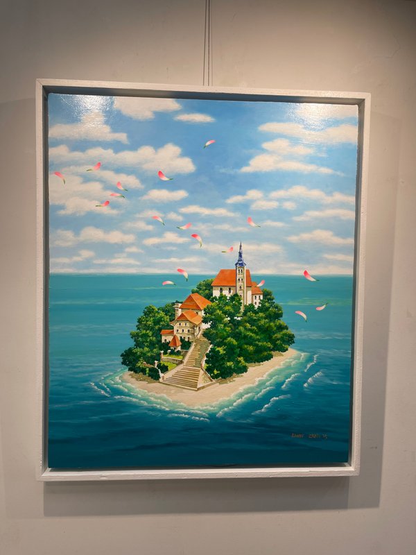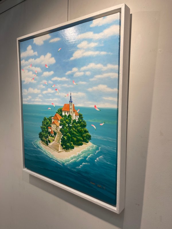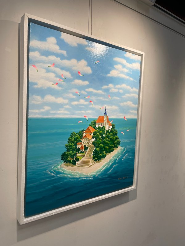 강라희 작가의 작품들은 오아시스라는 제목을 가지고 있습니다. 오아시스는 사막과 같이 척박한 환경에서 솟아나는 샘으로 생태계의 순환을 가능하게 하는 지역입니다. 강라희 작가는 그 오아시스를 커다란 부리를 가진 투칸새와 활짝 핀 꽃이 사는 곳으로 묘사합니다. 꽃과 투칸새는 캔버스의 중앙에 위치하고 주변은 빨간색, 파란색과 같은 강렬한 색으로 마무리되어 있습니다. 배경의 강렬한 색은 중앙의 소재들을 돋보이게 하면서 동시에 주변에서 고립된 지역인 오아시스를 연상케 합니다. 강라희 작가는 색과 구도 그리고 독특한 소재의 선택을 통해 자신만의 오아시스를 시각적으로 표현하고 있습니다. 실제의 오아시스보다 훨씬 강렬하고 화려하게 그려진 작품은 현실 세계에서 꿈꾸는 이상 세계의 환영이라 할 수 있습니다. 강라희 작가의 작품을 통해 집 안에 나만의 오아시스를 만들어 보는 것은 어떨까요?