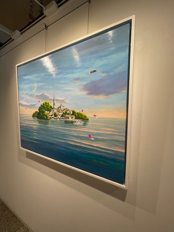 강라희 작가의 작품들은 오아시스라는 제목을 가지고 있습니다. 오아시스는 사막과 같이 척박한 환경에서 솟아나는 샘으로 생태계의 순환을 가능하게 하는 지역입니다. 강라희 작가는 그 오아시스를 커다란 부리를 가진 투칸새와 활짝 핀 꽃이 사는 곳으로 묘사합니다. 꽃과 투칸새는 캔버스의 중앙에 위치하고 주변은 빨간색, 파란색과 같은 강렬한 색으로 마무리되어 있습니다. 배경의 강렬한 색은 중앙의 소재들을 돋보이게 하면서 동시에 주변에서 고립된 지역인 오아시스를 연상케 합니다. 강라희 작가는 색과 구도 그리고 독특한 소재의 선택을 통해 자신만의 오아시스를 시각적으로 표현하고 있습니다. 실제의 오아시스보다 훨씬 강렬하고 화려하게 그려진 작품은 현실 세계에서 꿈꾸는 이상 세계의 환영이라 할 수 있습니다. 강라희 작가의 작품을 통해 집 안에 나만의 오아시스를 만들어 보는 것은 어떨까요?