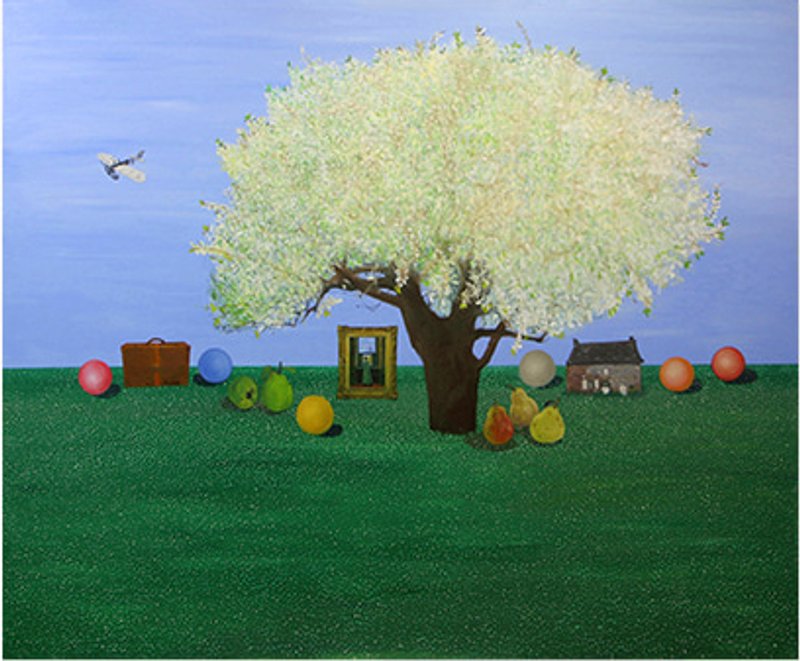 한광숙 작가의 작품에는 항상 나무가 등장합니다. 그런데 이 나무들이 주변에서 흔히 보는 것처럼 친숙한가요? 어딘가 낯설게 느껴지진 않나요? 작품 속 나무들은 그라데이션 기법을 통해 경계가 모호하게 지워져 마치 꿈결에 비친 풍경처럼 몽환적인 풍경으로 보입니다. 또한 커다란 사탕과 조그만 버스와 같이 크기가 뒤죽박죽인 사물과 배치되어 나무가 있는 풍경을 이상한 나라의 한 장면으로 보이게 합니다. 이와 같이 일상적인 사물이 논리의 법칙을 벗어난 채 제시되는 것을 데페이즈멍 기법이라고 합니다. 한광숙 작가는 그라데이션 기법과 데페이즈멍 기법을 사용해서 친숙한 나무를 낯설어 보이게 합니다. 그럼으로써 작품 속 나무는 일반적인 풍경화의 소재를 넘어선 강한 존재감을 가지게 됩니다. 한광숙 작가의 작품과 함께 친숙한 일상을 특별하고 아름답게 만들어 보는 것은 어떨까요?