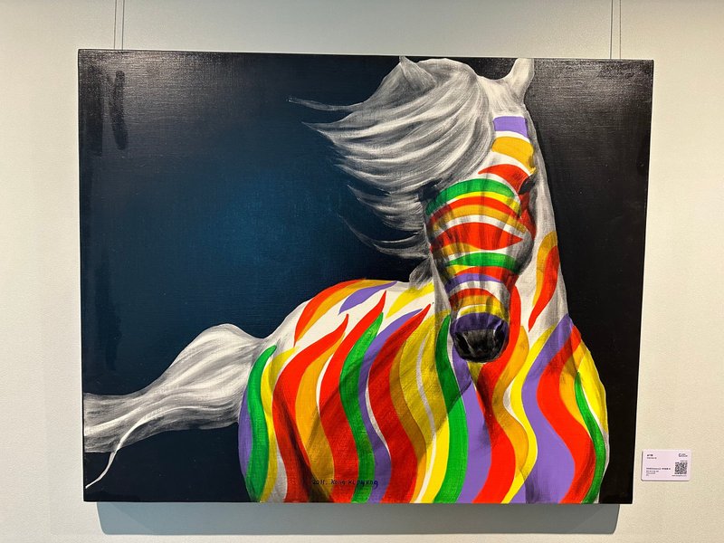 백마의 몸에 올라간 다채로운 물감은 마치 백마가 동물이면서 동시에 새하얀 도화지의 역할을 수행하고 있다는 것을 알게 해줍니다. 역동적인 백마의 움직임에서 감상자는 가시적인 속도와 에너지를 느낄 수 있으며 그 위에 올려진 감각적인 색들은 백마의 에너지에 시너지효과를 더하고 있습니다. 공기평 작가의 천지창조 시리즈 작품은 감상자와 전시공간에 엔진과 같은 역할을 수행해내는 작품입니다.
