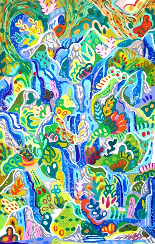김근아 작가의 작품을 보면 볼수록 생동감이 넘칩니다. 마치 화면 속에서 펄떡이며 살아 나올 것 같은 상상의 동물들과 그 안에서 함께 충만한 삶을 누리는 사람들의 모습을 관찰할 수 있습니다. 그의 작품은 삶에 지치고 권태로움을 느끼는 현대인의 삶에 마치 오아시스 같은 충만함을 제공합니다. 우리는 특히 인물들의 생동하는 움직임, 생명이 있는 듯한 사물들, 이들을 아우르는 강한 색채를 유심히 살펴볼 수 있습니다. 일종의 종교적 상징이 담긴 듯한 작업들, 신화를 구현한 듯한 작가의 상상력이 인상적입니다. 강한 에너지를 전달하는 작가의 작업을 함께 경험해볼 수 있길 바랍니다.